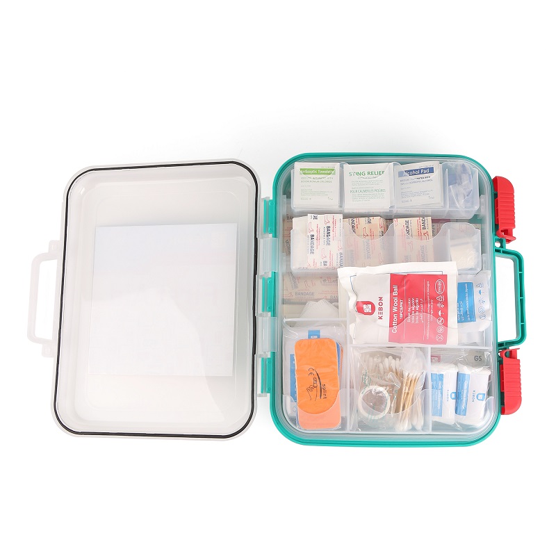 Omfattande innehåll: Lager med ett brett utbud av viktiga första hjälpen-tillbehör för att hantera skärsår, skrapsår, brännskador och andra mindre skador.